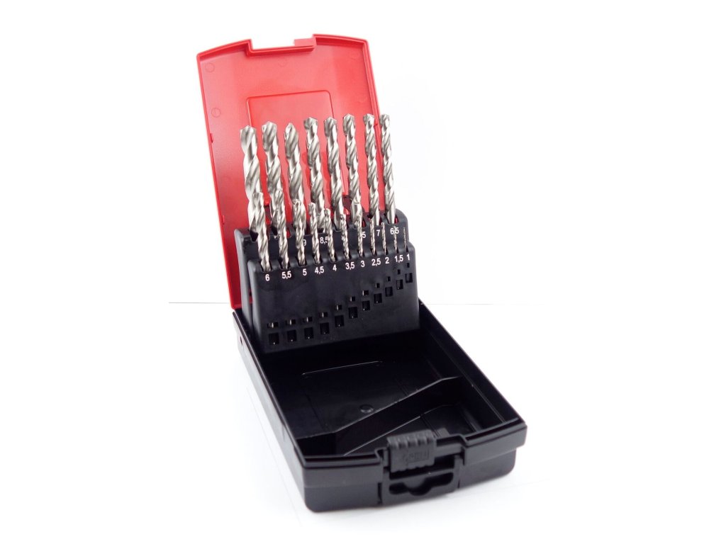 Všechny jsou uloženy v odolném průhledném boxu. Průměr vrtáků je od 1 mm do 10 mm, při čemž velikost je odstupňovaná po 0,5 mm. Tyto vrtáky lze ostřit bruskou DRILL DOCTOR 500X.