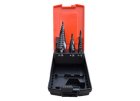 Stupňovité vrtáky jsou známy též pod označením kuželové vrtáky nebo stromečkové vrtáky. Oceníte je při vrtání tenkých plechů, ale i při vrtání například do plastu, plexiskla i hliníku. Mezi benefity těchto vrtáků patří, že velkou díru vyvrtají najednou, díky postupnému navrtávání materiálu. Nevíte, který stupňovitý vrták si vybrat? Poradíme vám s výběrem. Celý výběr kusových vrtáků i celých sad naleznete v této kategorii níže.